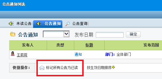 进入查看页面,可按【标记所有公告为已读】