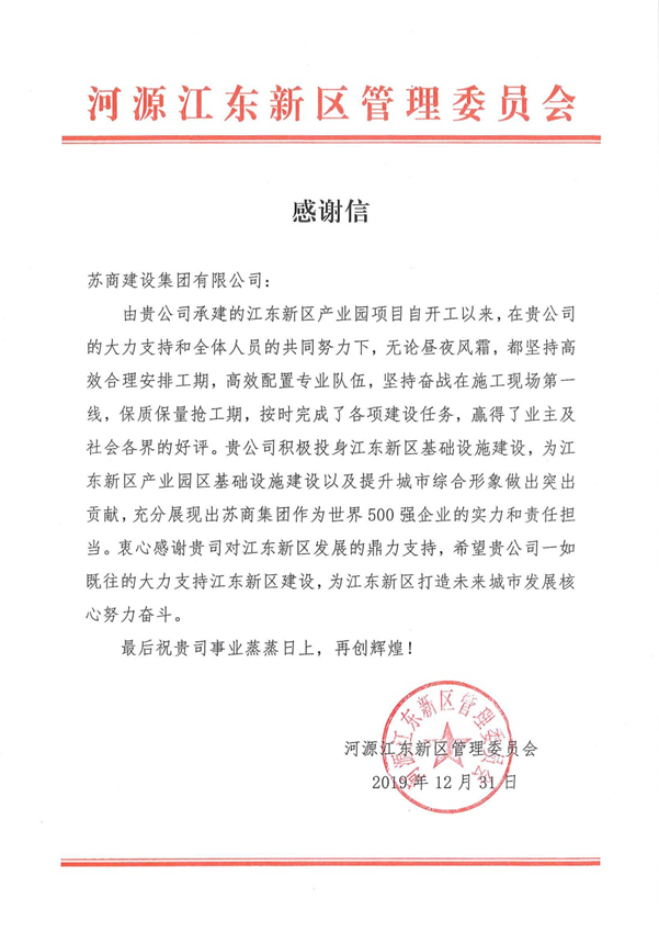 第六建设集团收到来自广东省河源市江东新区管理委员会的感谢信,信中对棒球下注