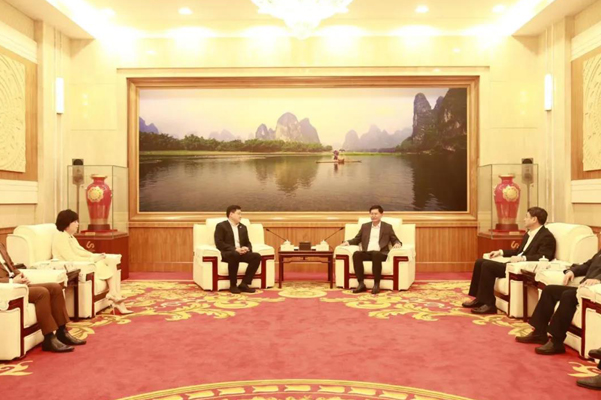 董事局主席严昕在南宁同广西壮族自治区代主席蓝天立会谈,双方回顾了务实友好的携手历程,并就进一步深化合作进行交流。