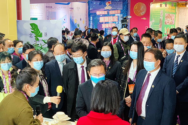 副总裁金友壮应邀赴广西梧州市参加第十七届梧州宝石节开幕式,梧州市委副书记、市长钟畅姿主持活动。开幕大会后,俞文陪同广西壮族自治区人大常委会副主任卢献匾,自治区党委委员、梧州市委书记全桂寿巡馆交流。