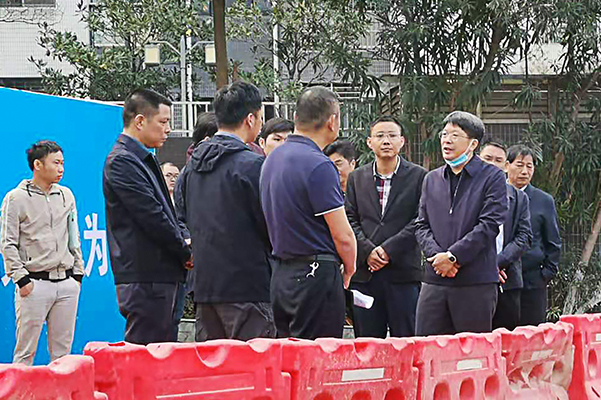 建设第六集团承建的东埔河(大同路段)污水管网治理现场,第六集团源城项目经理耿天利陪同视察。