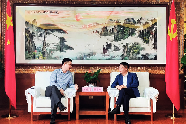建设董事局主席王健闯在海南省文昌市同文昌市委书记钟鸣明会谈,双方就进一步深化合作进行务实交流。