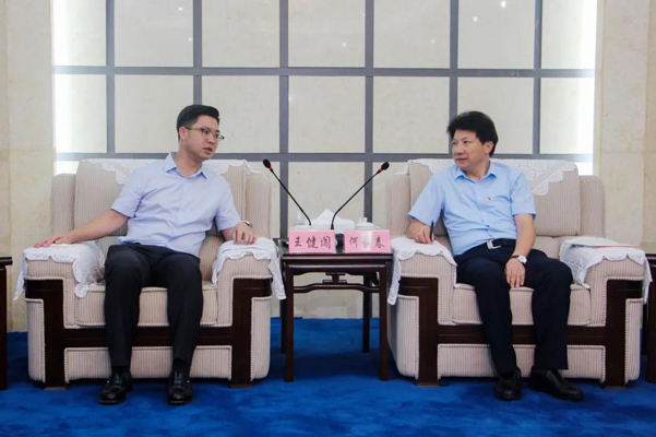 建设董事局主席王健闯在贵港市同广西贵港市委书记何录春会谈,双方就进一步深化合作展开交流。